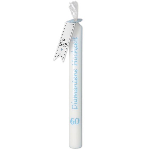 Goodtimes Stabkerze Weiß, Hellblau "Diamantene Hochzeit"